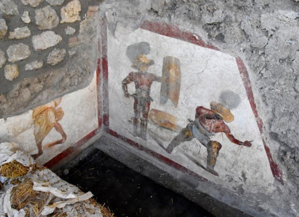 Исследователи нашли подробную фреску гладиаторского боя в древнеримском городе Помпеи, Италия. Находку обнаружили в подвале разрушенного дома, который был таверной для гладиаторов.