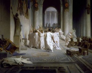 Заговорщики во главе с Марком Юнием Брутом во время заседания сената 15 марта 44 до н. е. убили римского императора Гая Юлия Цезаря.