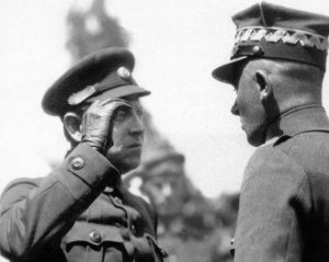 Главный атаман армии УНР Симон Петлюра приветствует польского генерала Эдварда Рыдз-Смиглы, Киев, 10 мая 1920 года. Фото: muzejunr.io.ua