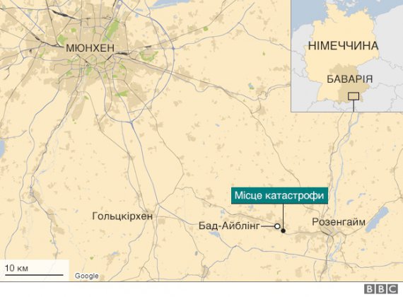 Авария произошла около 6:50 утра по местному времени (07:50 по киевскому) на линии Хольцкирхен - Розенгайм неподалеку Бад-Айблинг, курортного городка в 60 км к юго-востоку от Мюнхена.