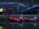 "Кабины водителей поездов вклинены друг в друга. Одна сторона одного поезда полностью разорвана. Другой поезд всверлился в него", - рассказал об увиденном немецкий министр транспорта Александр Добриндт на пресс-конференции после посещения места аварии.