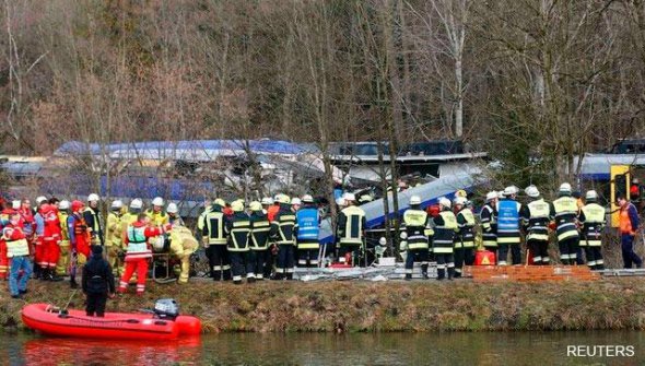 9 февраля 2016 в немецкой Баварии на большой скорости лоб в лоб столкнулись два пассажирских поезда.