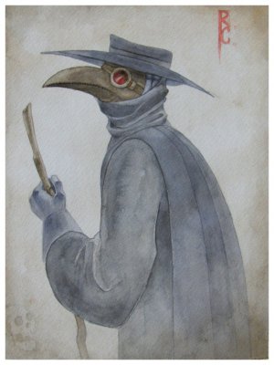 Тогдашние врачи могли напугать до смерти своими кожаными масками с длинным "клювом" и стекляшками на глазах. В музее Иема хранится одна такая. В "клюв" врачи закладывали пахучие бактерицидные травы вроде зверобоя — как защиту от вони и заразы.