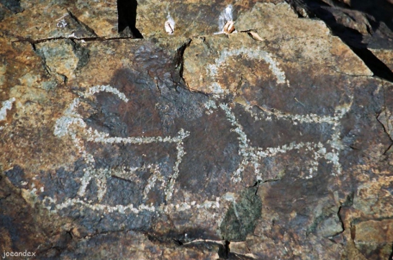 Петроглифы раннего железного века отличаются характерным для кочевых племен скифского круга "звериным" стилем. В основном здесь изображены олени, архары, лошади, верблюды. Исчезают изображения быков-туров, зато появляются характерные для кочевников изображения лука и стрел, а так же всадников и сцен охоты. В отличие от более древних рисунков, рисунки сако-скифского периода отличаются меньшими размерами. К тому же они выполнены разными художниками, но при этом мастера очень точно и старательно передали образы животных и людей.