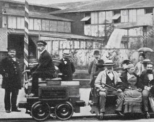 Посетители Берлинской выставки 31 мая 1879 года увидели первую в мире электрическую железную дорогу - маленький локомотив возил по кругу вагончики и при этом двигался без шума пара и клубов дыма.