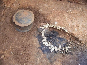 Могила, в которой найден венок, находится на обширном древнем кладбище, границы которого затронула прокладка ветки метро. Строительство метро, при котором найдены тысячи ценных предметов древности и Средневековья, существенно задерживается из-за археологических раскопок. Предполагается, что первая линия длиной 19,6 километра будет сдана в эксплуатацию после 12-летнего строительства в 2018 году.
