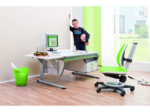 Свет должен падать сбоку. Современные письменные столы имеют разную форму - классические, прямоугольные, угловые Г-образные, полукруглыми. Это позволяет разместить в гармонии с остальной мебелью, а также выбрать положение, чтобы на стол хорошо падал свет. Потому что когда ребенок сидит спиной к окну, будет закрывать лучи, а рабочее место напротив окна не очень полезно для глаз, если ученик пользуется компьютером - свет разной температуры вреден. Хорошо, чтобы стол имел шкафчики, полочки - тогда ребенок будет куда сложить свои вещи, не будет так навалены сверху, школьник ровнее сидеть, не будет повреждать позвоночник.