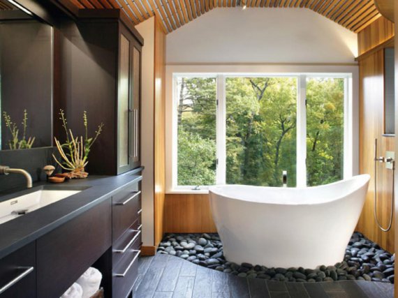 2. Позаботиться, чтобы в интерьере присутствовали природные элементы. Речь идет о древесине, камне и воде.