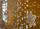 Для этого понадобятся белые нити или прозрачная леска, вата или пенопласт. Закрепите "снежки" на нитях или лески для надежности используйте немного клея ПВА. Чередуйте ватные или пенопластовые шарики с прозрачными или блестящими бусинами, так "снегопад" будет более эффектным.