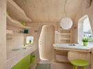 Они могут быть 8-13 км. м. при этом в них будет все, что нужно для жизни. Используя мебель из фанеры, архитекторы смогли разместить в маленьком доме раскладная кровать, стол и выдвижные лавки.