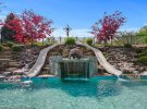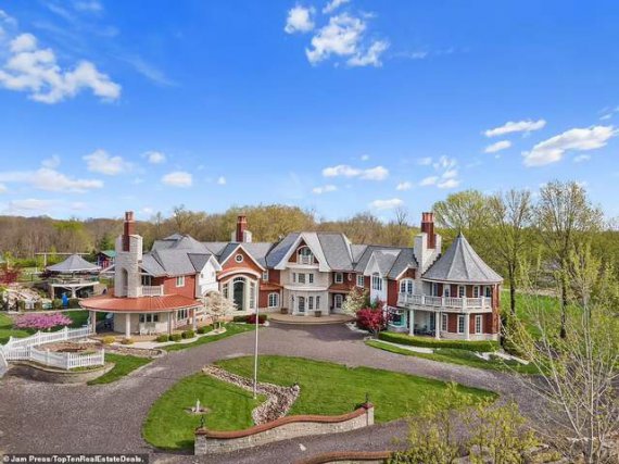 Этот объект построили в 2001 году на участке в 80 000 квадратных метров. Площадь недвижимости - около 1,4 тысячи квадратных метров. Здесь есть все необходимое для комфортной жизни: конюшня, грот с водопадом, огромный гараж, бассейн с горками, баскетбольная площадка. Риелторы считают имение интересным объектом в США.