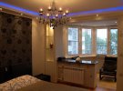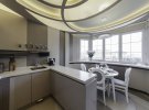 В совмещенных комнатах, тем больше в кухне, необходимо обратить внимание на освещение. Обязательно установите светильник над обеденной зоной. С помощью светодиодных лент можно разграничить пространство между кухней и лоджией. На лоджии можно расположить холодильник или часть кухонного гарнитура. Отличным дизайнерским решением стал подоконник между лоджией и кухней, его можно переделать в модную барную стойку.