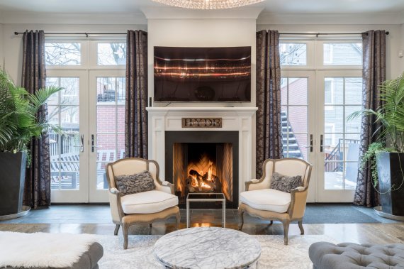 Если главной целью установки камина есть отопление, лучше разместите его у внутреннего угла комнаты. То есть, за стенкой должны быть другие помещения, а не улица. Если угловое размещение камина не соответствует дизайну и зонированию комнаты, можно расположить у внутренней стены.