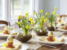 Некоторые хотят яркий красочный стол, другие же остаются сторонниками сочетание всего двух цветов. Весенними комбинациями являются желто-бело-зеленые. Например, мимоза, тюльпаны и сухие ветви. Двухцветные варианты упростят создание праздничных композиций.