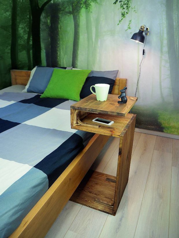 Если вы любите почитать под одеялом, и при этом хотите иметь качественное освещение, которое падает прямо на страницы с увлекательной историей, деревянный прикроватный столик станет настоящей находкой.