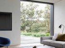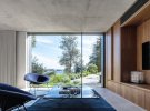 В отличие от остальных пляжных домов, этот наполовину покрыт разнообразной растительностью. Большие сосны украшают живописную территорию. Благодаря взаимодействию со средой дом стал как бы естественным продолжением участка. Большие панорамные окна подчеркивают это преимущество дома.