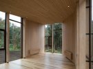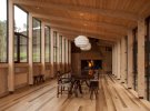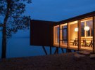 Конструкция имеет много панорамных окон, чтобы обеспечить дом естественным светом. Внутри помещение оборудовано камином.