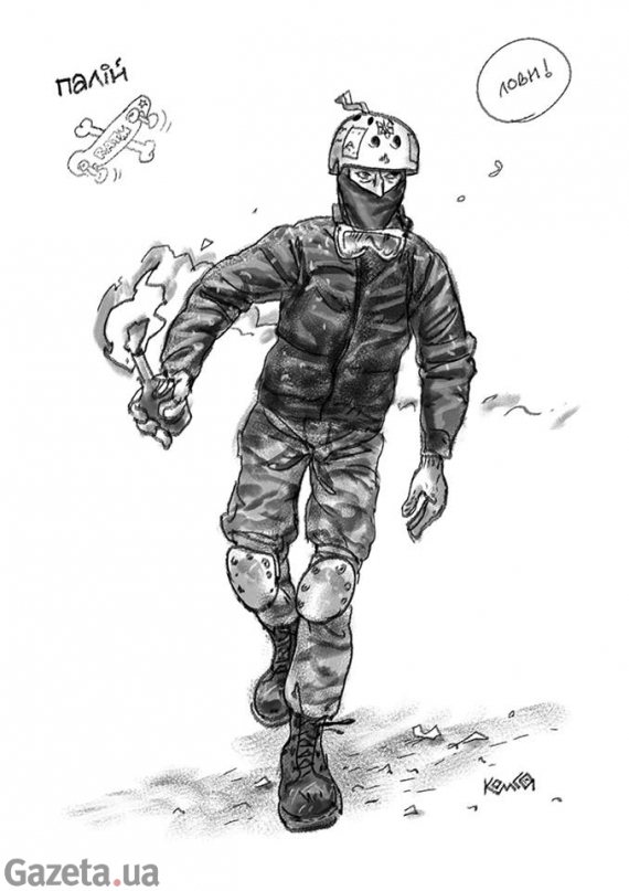 Участник противостояния майдановцев с силами МВД на улице Грушевского поделился размышлениями о том, какие подразделения митингующих самоутворились в розгаре боя, а также - какие для них напрашиваются названия. Автор позволил обнародовать его текст под псевдонимом. Gazeta.ua дополняет его рассуждения очень меткой подборкой рисунков, объединенных названием "Участники". Их размещает на своей странице пользователь фейсбуке Саша Комьяхов. Из его творческой руки уже расходятся интернетом такие "персонажи Грушевского": "Железняк" - в металлических доспехах, "Каменяр" - хлопает плитку, "Наливайко" - готовит коктейли Молотова, "Палій" - использует их по назначению, "Мураха" - таскает тяжести, девушка "Канапка" - на разносе, "Довбушиха" - долбит такое знакомое всем, кто бывал на месте событий, "Бам! Бам! Бам-бам-бам!", а также "Панотець" , "Сестричка", "Небайдужа", "Тьотя Валя" и другие. Судя по тому, что последний рисунок выложен сегодня, не исключено, что подборка еще пополняется.