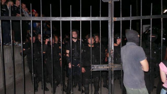 Позже "азовцы" прорвались на территорию застройки и снесли часть забора.