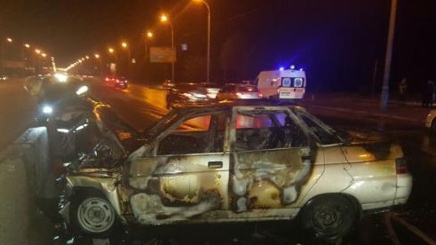 В Днепровском районе в Киеве водитель легковушки Ladа не справился с управлением и врезался в отбойник, в результате чего авто загорелось и полностью выгорело.