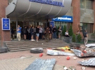 Сегодня утром активисты гражданского корпуса "Азов" устроили акцию протеста под офисом строительной компании "Киевмиськбуд". Около 08:30 туда пришли около 50 мужчин, которые принесли автомобильные шины, разбросали мусор и заблокировали вход в учреждение.