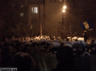 Никаких активных действий нет. Люди стоят под сильным снегопадом друг против друга. Из колонок автобусов оппозиции, которые оказались за спинами правоохранителей, играет украинская народная музыка.