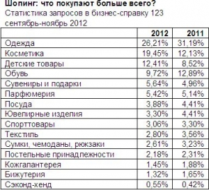 Самый популярный предмет шопинга, естественно, одежда. 19% запросов по одежде приходятся на детскую, 14% - спортивную.
