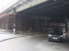 Мост обвалился 27 февраля в 20:31. Он расположен в Соломенском районе столицы. Длиной 408,9 м, шириной 21 м. Соединяет ул. Александра Довженко и Вадима Гетьмана. Под ним - крупнейшая транспортная артерия столицы - просп. Победы. Неподалеку станция метро Шулявская. Обвал произошел на съезде с ул. Вадима Гетьмана на проспект. Обломок повредил окно белой "Тойоты Камри". Людей в салоне не было.