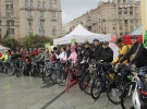 На Майдане Независимости встретились жители Киева, которые приехали на велосипеде на завтрак, чтобы потом разъехаться на работу или учебу.