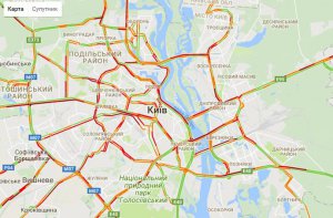 Из-за сложных погодных условий в Киеве существенно затруднено движение транспорта. Пробки достигают 8 баллов.