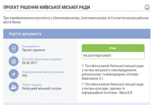 "Проект решения подали депутаты от "Свободы"и сейчас он проходит процедуру в комиссиях Киевсовета", отметил мэр. Хотя в проекте решения говорится, что именно он является автором представления.