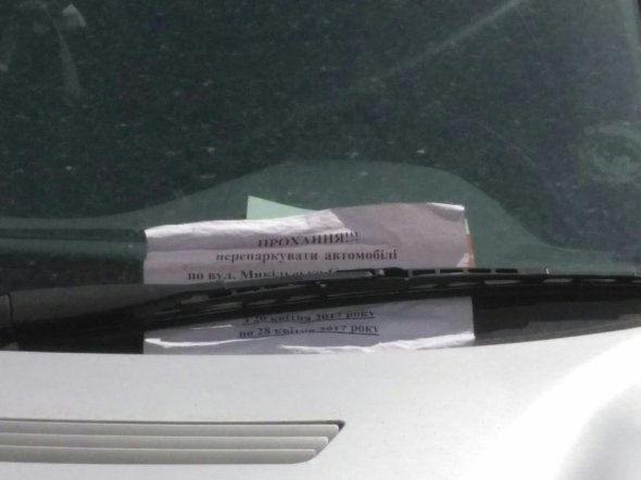 На лобовом стекле машины коммунальщики оставили сообщение с просьбой припарковать автомобиль в другом месте. Однако хозяин авто не выполнил этой просьбы.