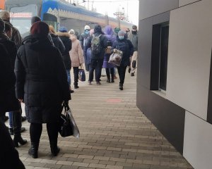 Очередь выстроилась на остановке скоростного трамвайного маршрута №3, сообщил в Facebook "Киев Оперативный".