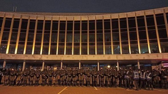 На фото видно, как сотни силовиков окружили рубежом здание. Они были там до прихода демонстрантов.