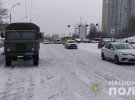 В Киеве освобождать транспорт из снежных ловушек помогают бронетранспортеры. Военною технику для спасательных работ привлекла полиция города.