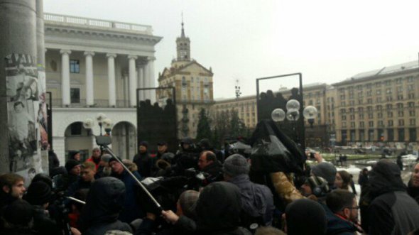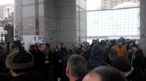 Около сотни человек собрались на площади Независимости в центре Киева с требованием сурового наказания для титушки Юрия Крысина, которого подозревают в причастности к убийству журналиста Вячеслава Веремия во время Революции достоинства.