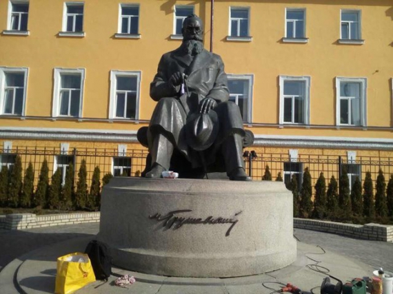 "Памятник Михаилу Грушевскому оказался ничьим. Он не числиться на балансе ни у одного из коммунальных предприятий. И сказать точно, когда исчезла надпись, мы не можем. Сейчас временно за ним будет ухаживать наш центр. Решается вопрос, кому именно его передадут на баланс, возможно, департаменту культуры КГГА. Потерянную надпись восстановили бесплатно специалисты, которые занимаются изготовлением памятных досок. Они нашли старые чертежи памятника и восстановили надпись, привинтив ее на место. Надеюсь, что подобное не повторится", – рассказала гендиректор Киевского научно-методического центра по охране, реставрации и использованию памятников истории, культуры и заповедных территорий Ирина Прокопенко.