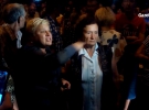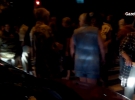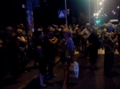 Другая группа людей не поддерживают действия митингующих и кричат им "Позор" и "Банду геть".