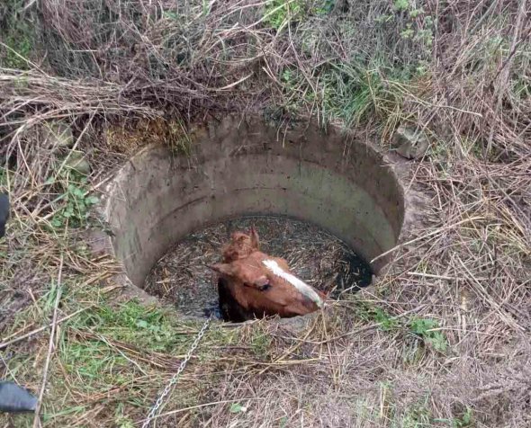 Сегодня, 24 ноября, в селе Халепье Обуховского района конь упал в колодец, который был открыт и расположен в зарослях.