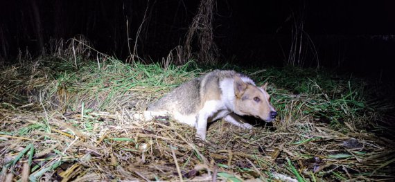 В субботу, 26 декабря, в селе Зазимье под Киевом обнаружили собаку, которая лежала и не двигалась. Хвостатого заметили местные жители и вызвали команду спасения животных.