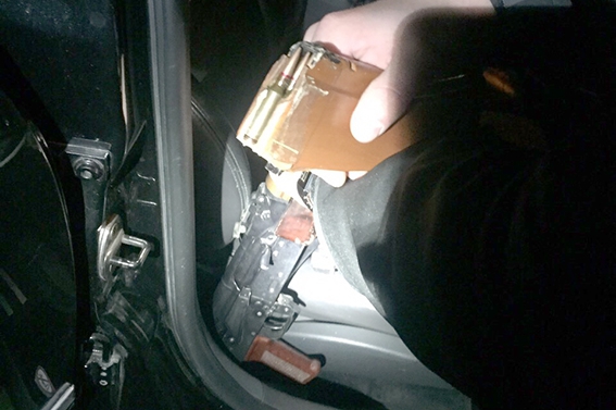 При осмотре автомобиля были изъяты патроны и автомат Калашникова, сообщили в Главном управлении Национальной полиции города Киева.