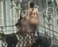 В центре Киева на балконе одного из домов женщины устроили полуобнаженную фотосессию.