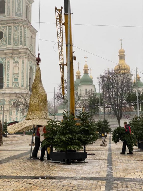 "Шляпу аккуратно сняли и начали разбирать ее конструкцию на месте. Это заметил мужчина, который сделал фото на Софийской площади. Но шляпа целая и в полном порядке", - рассказали в компании Folk Ukraine, которая организовывает новогодне-рождественские празднования в столице.
