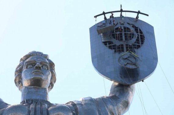 1 августа в Киеве полностью демонтировали советский герб из монумента "Батьківщина-мати".