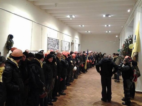 На фото сотни участников отрядов самообороны Майдана готовы отражать атаку "Беркута".