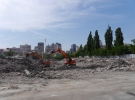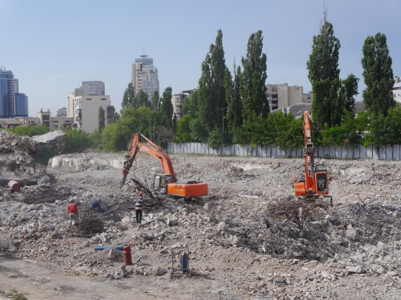 В Киеве снесли руины одного из крупнейших когда-то крытых рынков столицы "Центрального колхозного рынка" или как его называли киевляне "Сенного". Сейчас по улице Воровского, 17 работает тяжелая строительная техника. Экскаваторами разрушили второй ярус и засыпали подвалы. Несколько дней грузовиками вывозят строительный мусор, а строители режут остатки металлолома. Работа по демонтажу остатков рынка занимается ПАО ХК "Киевгорстрой".