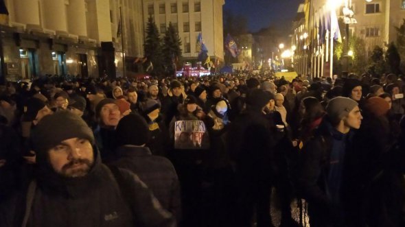 Люди собрались на акцию "Высадка на Банковой" собираются ночевать под зданием, чтобы Зеленский не пошел на уступки Путину