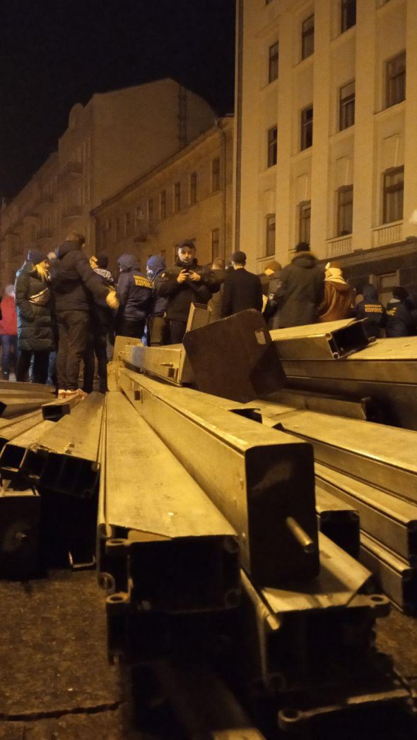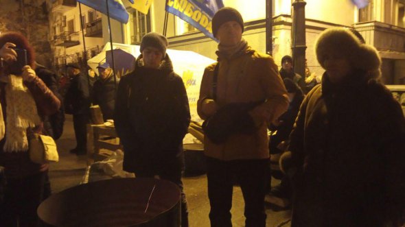 На часах 18:30, возле Офиса около семи сотен активистов. Из-под входа в здание, в громкоговоритель, Денис Любченко со всеукраинской общественной организации "Солидарная Молодежь" дает объявление. Говорит, что необходима помощь в обустройстве инфраструктуры лагеря. Планируют установить пункты обогрева и маленькую сцену.