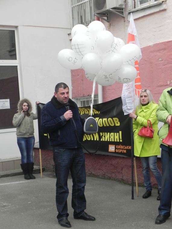 Один из организаторов акции, главный координатор гражданской кампании "Форум спасения Киева" Виталий Черняховский заявил: "Киевляне обеспокоены тем, что член организованной группировки Черновецкого, третье лицо "Блока Леонида Черновецкого" Денис Комарницкий, который непосредственно организовывал и продолжает организовывать голосование в Киевсовете за раздачу земельных участков под незаконную уплотнительную застройку, может избежать справедливого наказания".