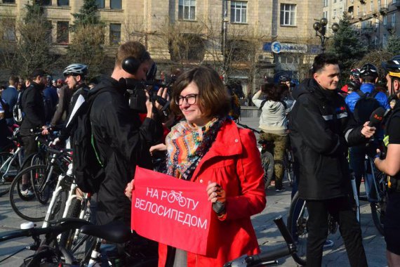 "Акция призывает ездить на работу великом, потому что это лучший вид транспорта. В Киеве достаточно сильное велосипедное лобби. Хочется больших и быстрых изменений", - рассказала Наталья Шванова, член Ассоциации велосипедистов Киева.